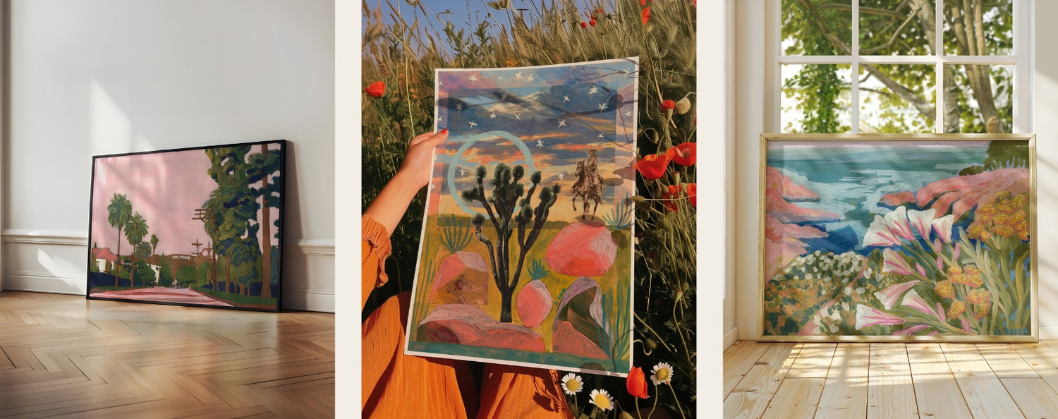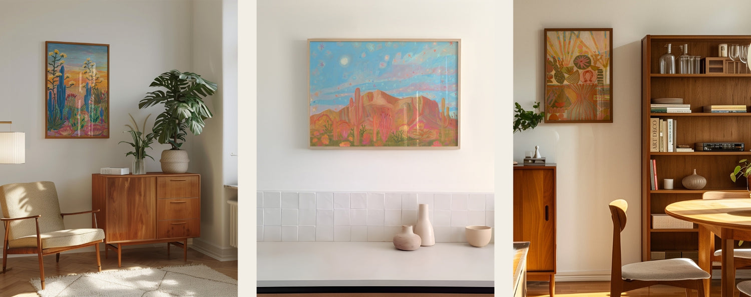 Colorful Midcentury Inspired Western Desert Landscape Paintings and Prints
