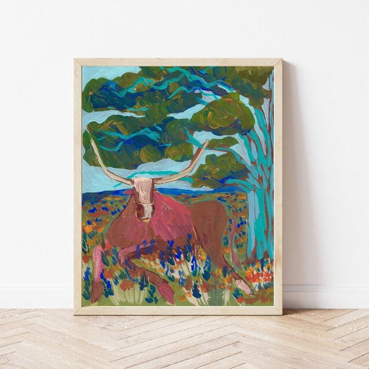 Texas Hill Country Longhorn Print – Authentic Longhorn Art Print on Durable Matte Paper