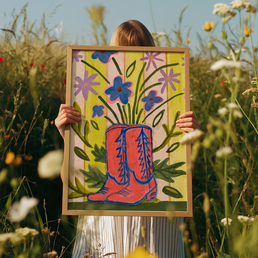Pink Desert Cactus Flowers Original Artwork - Framed, 8x10"